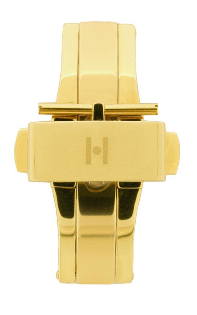 Hirsch viklås guldfärgad BC 1024 1. Detta viklåset är högklassig likaså Hirsch armbanden och det passar till de flesta läderarmbanden. Viklåset är tillverkat i guldfärgad rostfritt stål. Ett bandstift ingår som använts till att fästa armbandet. Låsets höjd är 3,7mm vilket gör att det inte passar ihop med tjockare armband. OBS! Viklåsets storlek innebär låsets bredd. Låset finns i tre olika storlekar: 16mm, 18mm och 20mm.