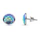 Hopeapuro Våg 8 mm örhängen är dekorerad med en blå hartspärla med mycket fin lyster. Diameter 8 mm. Hopeapuro smycken skickas hem i tillverkarens original smyckesask.