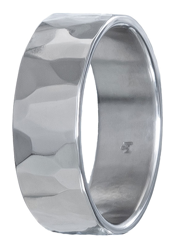 Tålig Ilkka Marttiini rak ring av rostfritt stål för vigsel och förlovning. Ringen är 7 mm höjd och har en hamrad yta. Tillverkad och designad i Rovaniemi, Finland. Skickas i tillverkarens originalförpackning.
