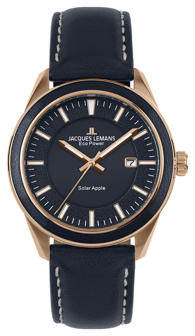 Jacques Lemans Eco Power Solar 1-2116C är en ekologisk klocka som kombinerar ett solar urverket med biobaserad AppleSkin™ läder. Den klassisk rund boett är i roseguldfärgat rostfritt stål och är matchad med en svart urtavla och armbandet i vegansk läder tillverkad av äpple skalar. Klockan drivs av solenergi och lagrar energin i ett batteri. Gångreserv 120 dagar. Jacques Lemans klockor har 2 års garanti och skickas hem i tillverkarens originalförpackning.