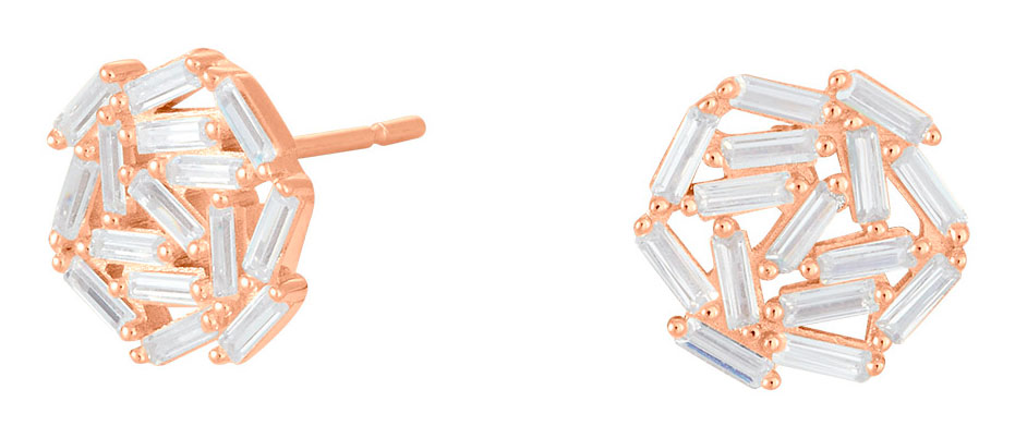 Joanli Nor BESSNOR örhangen roseguld 345 156-4‌‌. Ett par silvriga knappörhängen med baguette cut zirconia. Örhängenas diameter är 10mm och örhängena är rosèguldpläterade. Joanli Nor smycken är tillverkade i äkta silver och de levereras i tillverkarens originalförpackning.