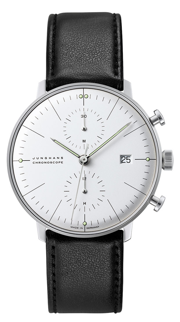 Designen på Junghans Max Bill Chronoscope 27/4600.02 kronografklocka är mycket imponerande och dess urtavla är elegant minimalistisk, med två subdial för kronografer och en datumtavla. Den vita urtavlan har också repskyddande och antireflexbehandlat safirglas och självlysande minut- och timvisare som gör den lättare att läsa av i mörkret. Det automatiska urverket med kaliber J880.2 har en effektreserv på upp till 48 watt. Den silverfärgade boetten i rostfritt stål är 40 mm bred och 14,4 mm tjock, medan det svarta armbandet är tillverkat i äkta läder och mäter 20 mm vid fästpunkten. Junghans Max Bill Chronoscope 27/4600.02 har en vattentålighetsklass på 50m/5atm, vilket innebär att den har begränsad vattentålighet (simning rekommenderas inte).