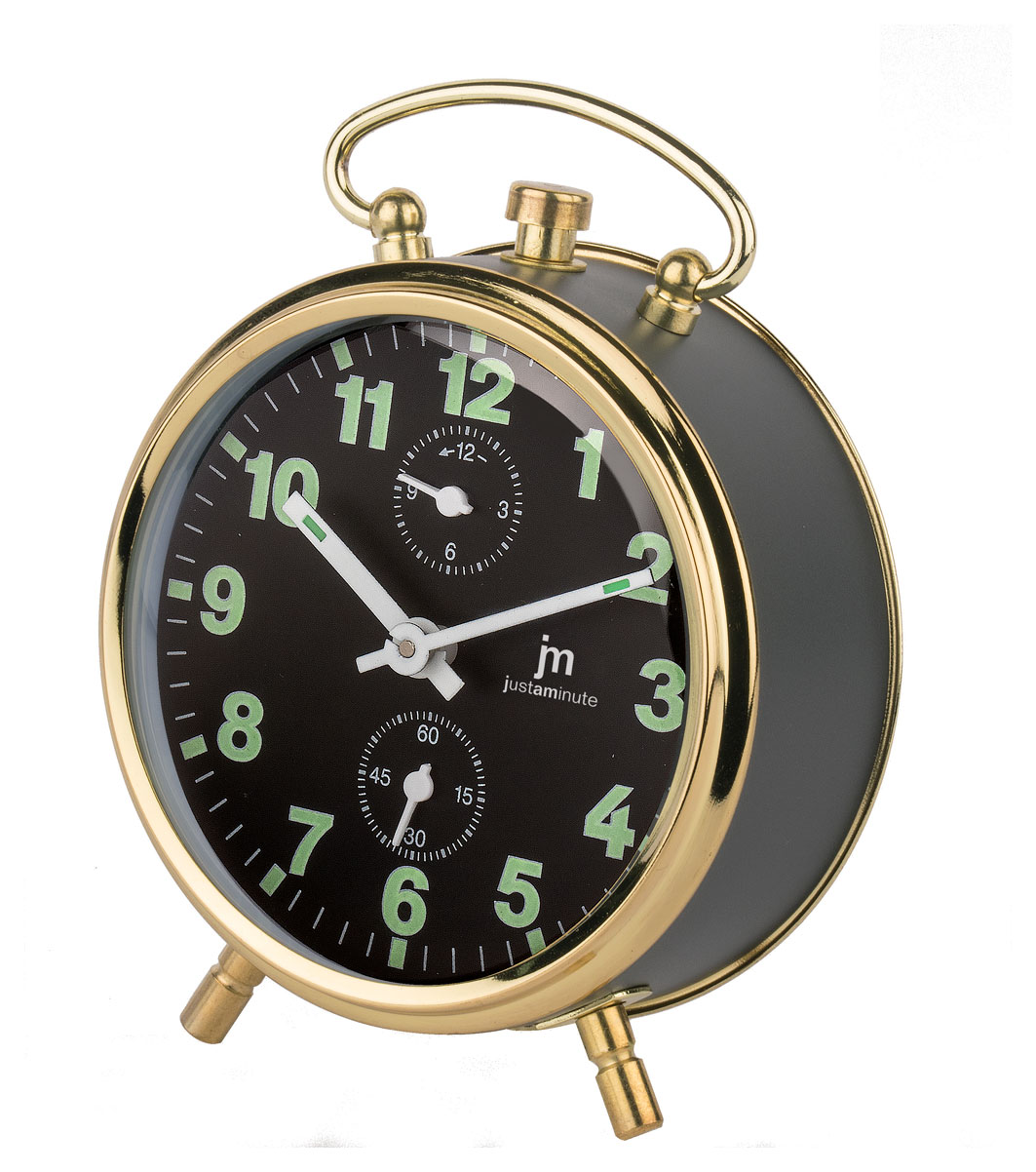Justaminute väckarklocka JA7041G med gammaldags charm. Klockan har tydliga arabiska siffror och alarm. Mått:9 x 12,5 x 5,5 cm. Klockan är mekanisk. Justamite alarmklockor har 1 års garanti.