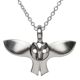 Kaamos Pöllö 001 är ett halsband i sterling silver med en uggla. Hänges storlek är 25 x 12 mm, och pansarkedjas längd är 45 cm. Korupaja Kaamos smycken skickas hem i tillverkarens originalförpackning.