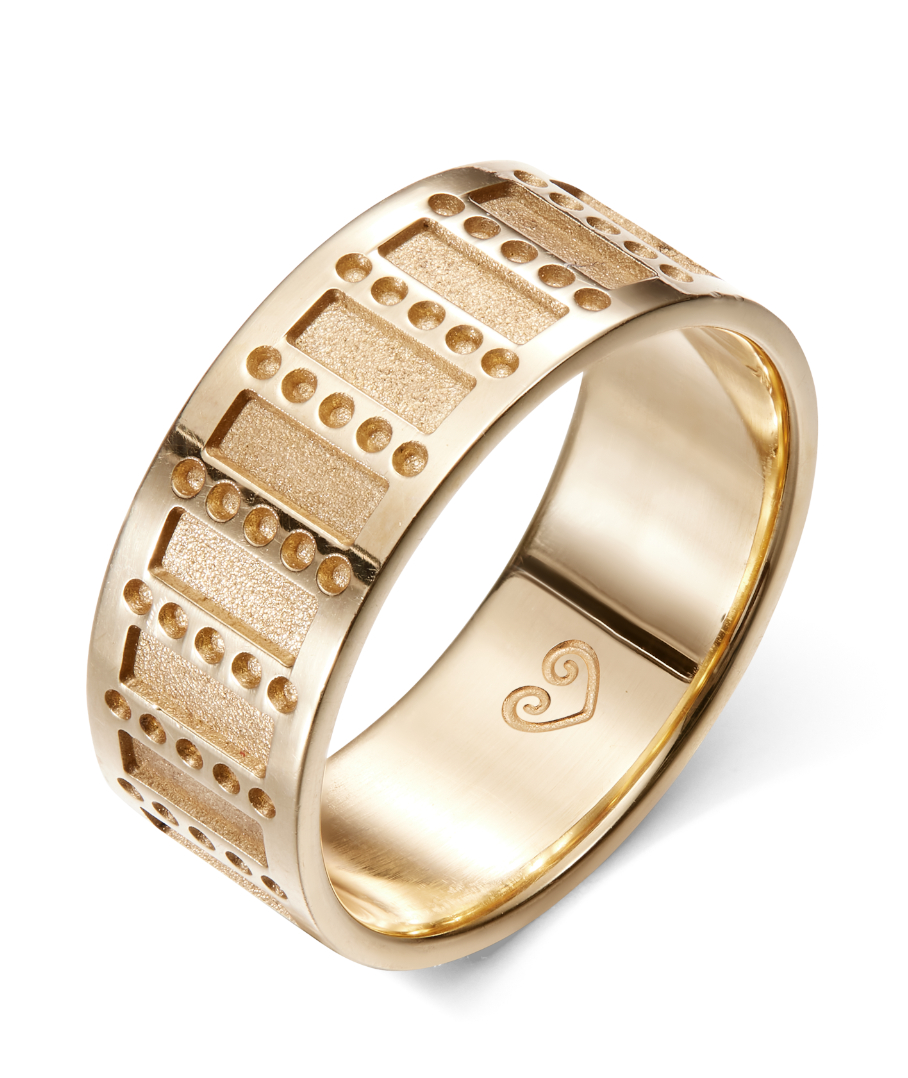Ringarna i Kalevala Love-kollektionen representerar Kalevalas starka historieberättande och moderna design. De är handgjorda i Finland av 14 karat återvunnet guld, med respekt för det finska guldsmedshantverket. Den inre ytan på ringarna i kollektionen är graverad med Euras hjärta, en vikingatida symbol för kärlek.