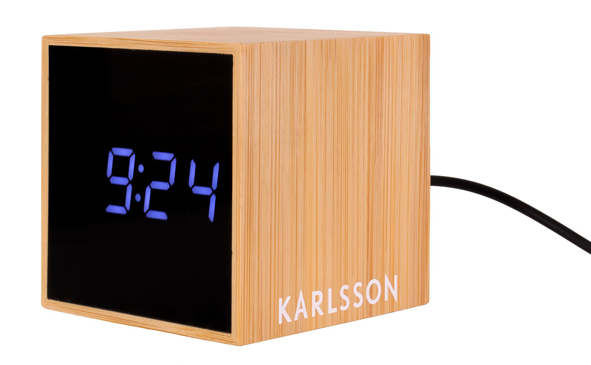 Karlsson KA5723 Mini Cube väckarklocka formad som en kub i brun bambufaner med LED-display. Mått: 6,3 x 6,3 cm. Denna väckarklocka fungerar med AA batterier (OBS! Batterier ingår ej i priset). USB-kabel ingår i paketet.Vi erbjuder garanti upp till två år.