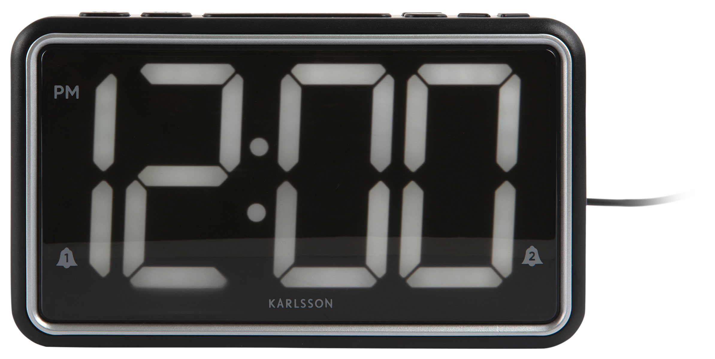 Karlsson New Retro väckarklocka KA6035BK är gjord av ABS-plast och har en digital urtavla. Väckarklockan har även en snoozefunktion för sena morgnar och en ljusknapp så att du kan se tiden bättre. Den digitala LED-väckarklockan är 9 cm bred och 4,5 cm hög. Klockan fungerar med 2 x AAA-batterier (batterier ingår inte i produkten).