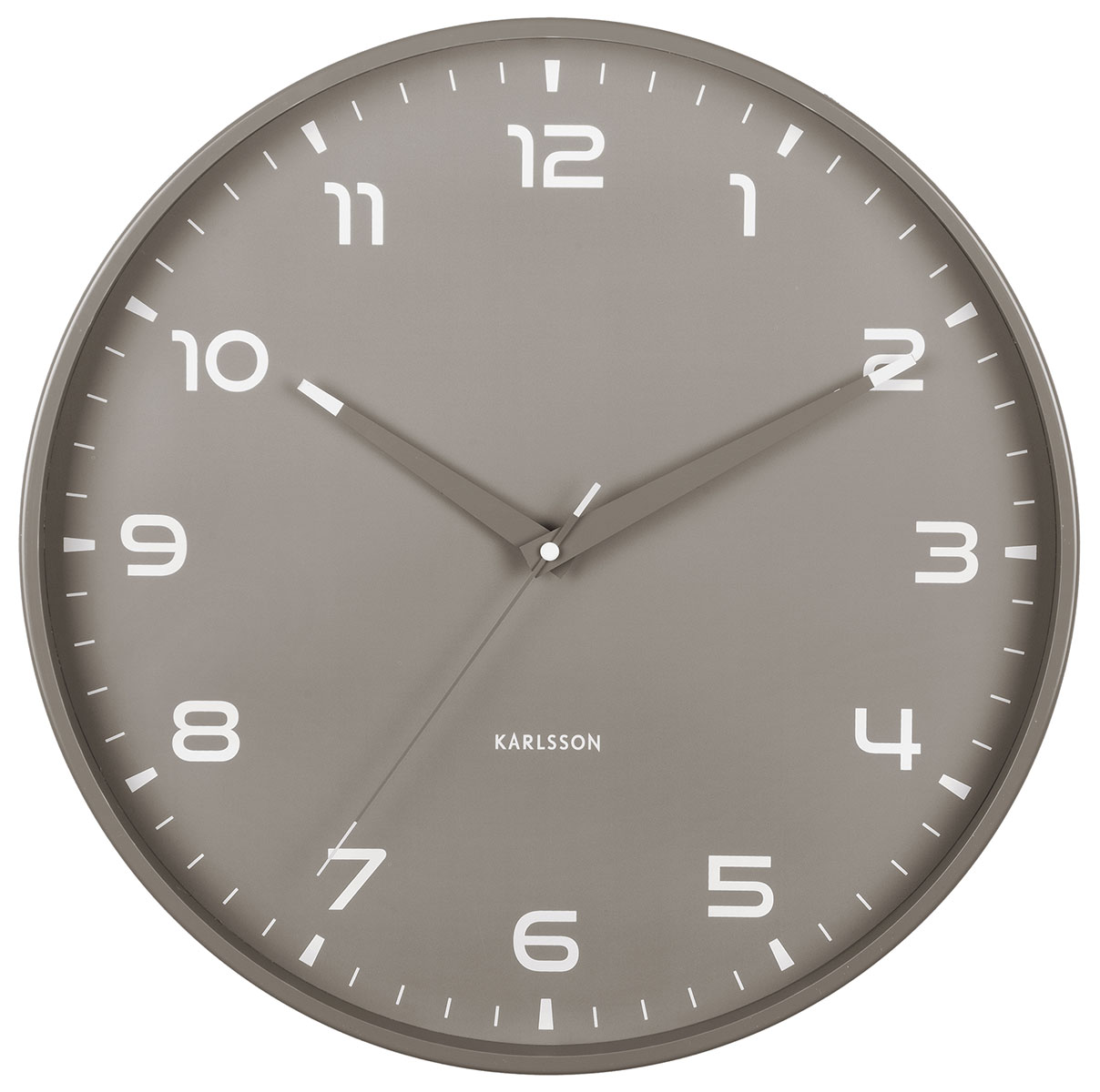 Karlsson Orgullo KA6053GY är en klassisk rund väggklocka med synliga och stora talindex, en minutskala och sekund-, minut- och timvisare. Klockan har en tyst sekund med glidande rörelse. Den grå klockan är gjord av aluminium och har en diameter på 40 cm och en tjocklek på 4,3 cm. Klockan drivs på ett AA-batteri (batteri ingår ej). Designad av Armando Breeveld.