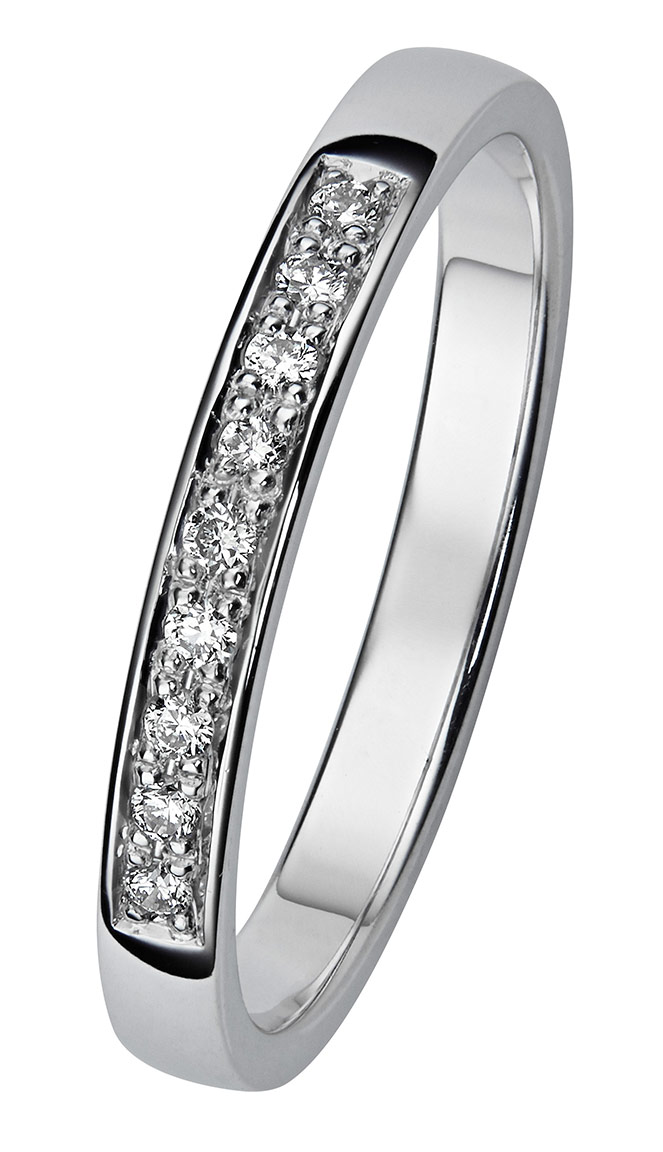 Kohinoor 033-210V-09 Margit är en tidlös halvallians ring av vitguld med briljanta diamanter. Kohinoor ringen tillverkas i Tavastehus, Finland.
