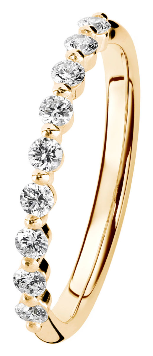 Kohinoor Dahlia 033-232K-27 är en fantastisk halvallians diamantring i 14 karat gult guld. Ringen har 9 gnistrande H/Si-diamanter som väger 0,27 carat. Ringen har ett 2 mm brett skena och finns även i vitguld. Kohinoor-smycken levereras i tillverkarens originalförpackning.