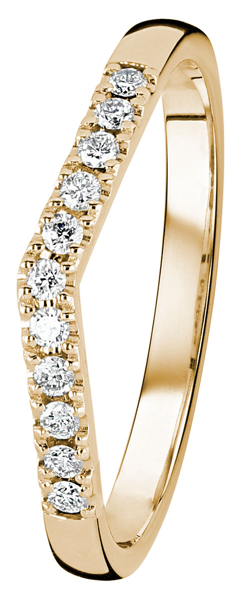 Kohinoor Estelle 033-216K-11 är en sofistikerat böjd chevronring tillverkad av 14 karat gult guld. Ringen har 11 gnistrande H/Si-diamanter som väger totalt 0,11 carat. Kohinoor Estelle chevronringen kan enkelt kombineras med en mängd olika ringdesigner och finns även i vitguld. Kohinoors smycken levereras i tillverkarens originalförpackning.