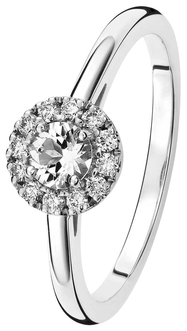 Kohinoor Garda vit topas diamantring 033-421V-12 i 14K vitguld med 12 briljantslipade diamanter och en vit topas.
