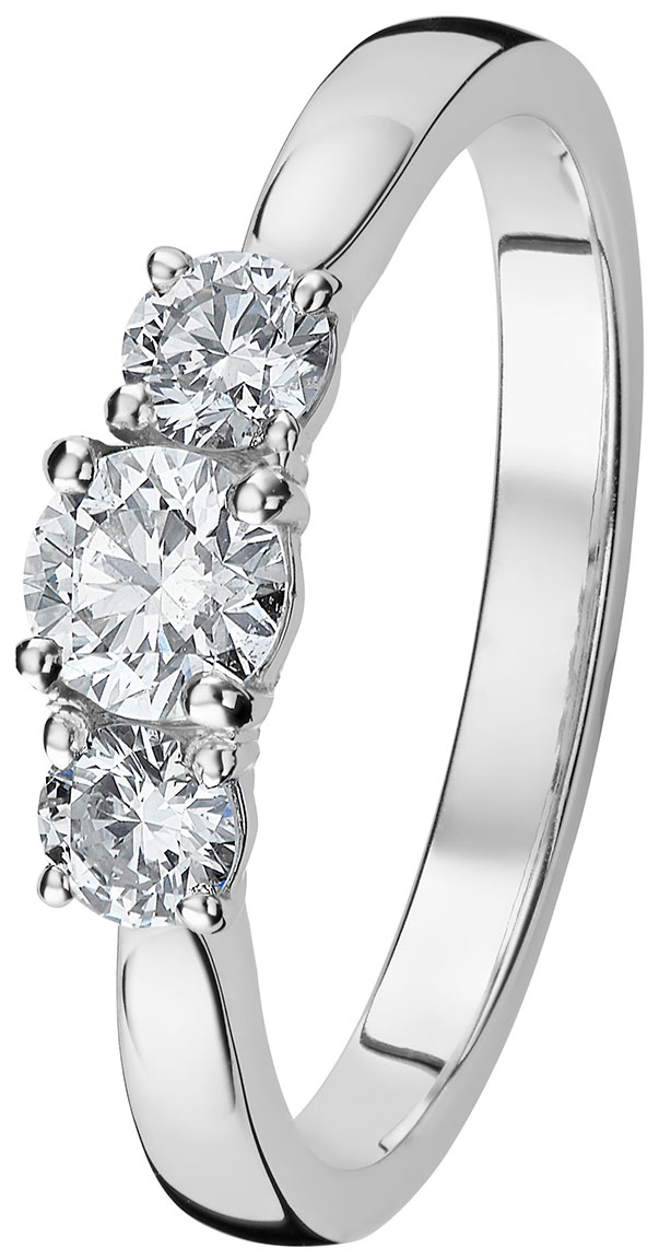 Kohinoor Mia 933-414V-58B4 är en diamantring med tre stenar och är helt i 14 karat vitguld. Den är designad av Assi Arnimaa och tillverkad i Finland. Den vackra ringen glittrar med tre briljantslipade diamanter. Den centrala stenen är 0,30 karat, och sidorna är 0,13 karat. Den totala vikten är 0,56 ct. Ringen är 2,2 mm tjock. Kohinoor-ringar levereras i tillverkarens originalförpackning och har ett års garanti.