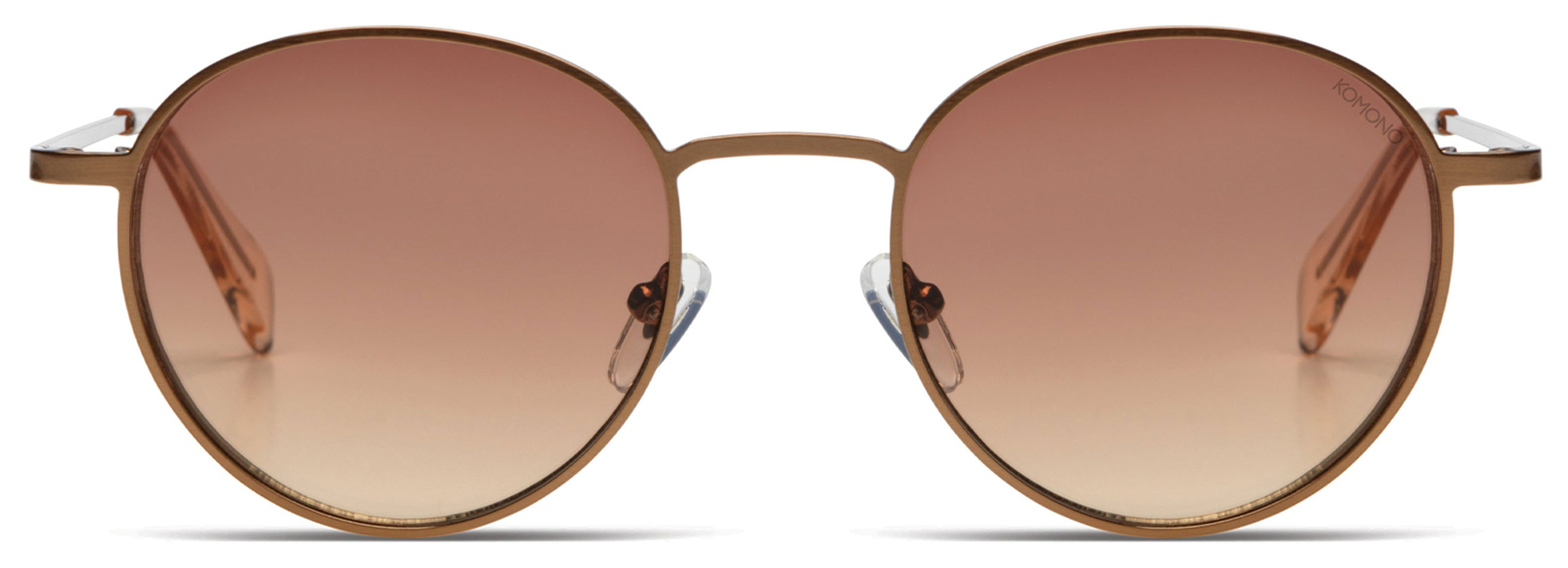 KOMONO James Pale koppar-solglasögon ger en fräsch uppdatering av KOMONOs populära Taylor-solglasögon. De har klassiska ovala linser i en båge av rostfritt stål, vilket ger solglasögonen en snygg och högkvalitativ look.