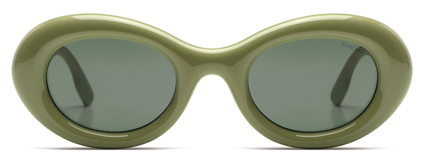 KOMONO Molly Moss solglasögon är inspirerade av musikern Kurt Cobains ikoniska stil, med stora bågar och rundade fronter som skapar en distinkt och djärv look.
