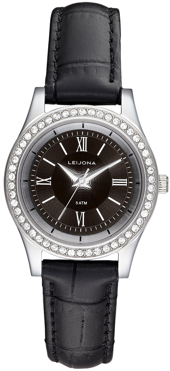 Klassisk Leijona 5120-4381 klocka för kvinnor med krokodilmönstrad läderarmband, romersk index och inbäddad kristaller. Boetten är 28 mm i diameter och armbandets längd är 14,5-19 cm. Leijona klockor designas i Finland och är en av de äldsta klockmärke i Finland. Klockor har 2 års garanti och skickas hem i tillverkarens originalförpackning.