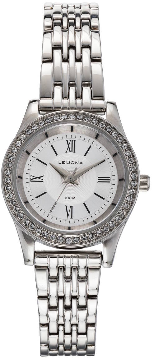 Urtavlan på den silverfärgade Leijona 5172-4387-klockan är prydd av klara zirkoniajuveler. Urtavlan är skyddad av mineralglas. Boetten är 29 mm i bredd och 8,6 mm i tjocklek. Armbandet är 14 mm i bredd vid fästpunkten. Leijona-klockorna har en garanti på 2 år och levereras i tillverkarens originalförpackning.