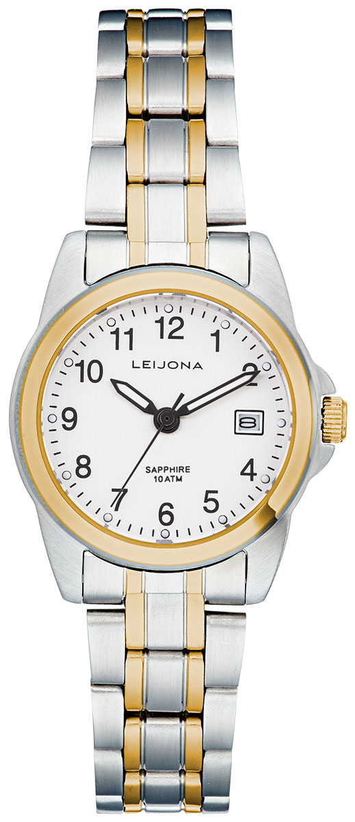 Leijona Classic Soisalo 5171-4507 drivs av en högkvalitativ Miyota 2015-3H kvartsverk. Klockan har en silverfärgad ram och ett tvåfärgat armband i rostfritt stål och mäter 27 mm i bredd och bara 7 mm i tjocklek. Klockan har självlysande visare som hjälper till att läsa av urtavlan i svagt ljus. Ett repfritt safirglas skyddar den vita urtavlan med datum vid klockan 3. Leijona Classic Soisalo 5171-4507 är vattentålig till 100m/10atm, vilket gör den lämplig för dykning och snorkling.