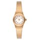 Leijona Kuiske 5170-4727 är en graciös och lätt damklocka som utstrålar elegant stil i kombination med ett långlivat 5Y20 kvartsurverk med 4 års gångreserv. Den guldfärgade runda boetten i rostfritt stål är bara 18 mm i diameter och 7 mm tjock. Slätt, hållbart mineralglas skyddar den vita urtavlan med svarta numeriska index och guldfärgade visare. Armbandet i rostfritt stål är 9 mm brett. (Obs! Leijona Kuiske 5170-4727 är vattentät till 30 m / 3 atm, dvs. den är stänkvattentät.