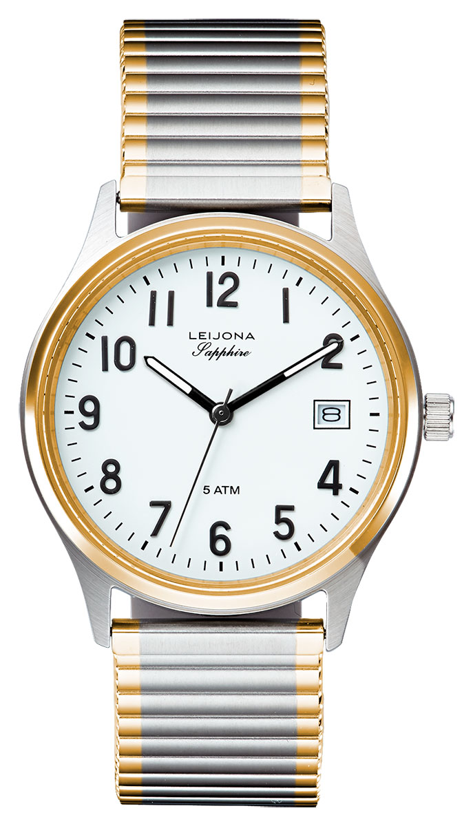 Tvåfärgat Leijona Legends Stretch 34 5013-677 är en elastisk armbandsklocka som är enkel och smidig att ta av och på din handled. Det snygga och praktiska stålarmbandet känns skönt mot huden och är slitstarkt men också mycket lätt.