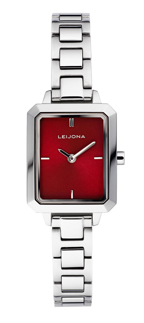 Leijona Sointu Razzle Red 5172-4734 är en charmig hyllning till 70-talets flamboyanta stil! Med en färgglad urtavla, varm atmosfär och ett unikt utseende är detta armbandsur fullt av attityd. Det silverfärgade metallarmbandet och den rektangulära boetten utstrålar en kantig vintagedesign. Boetten i rostfritt stål är 26,5 mm lång och 22 mm bred. Slitstarkt mineralglas skyddar den ljusgröna urtavlan med minut- och timvisare och minimalistiska index. Klockan är vattentålig till 30 m / 3 atm, vilket betyder att den är stänkskyddad.