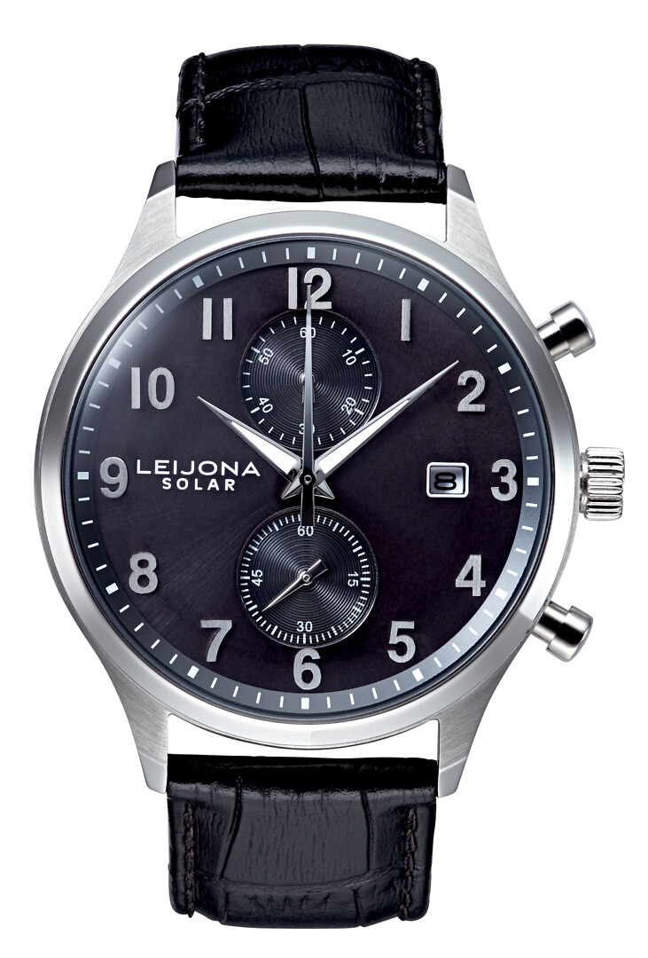 Leijona Sport Ohra Solar Chrono Steel & Black 5020-2601 är det perfekta valet för alla som letar efter en klassisk klocka. 5020-2601 har hämtat inspiration från de klassiska racingkronografer och är fylld med fantastiska detaljer som stora knappar och två subdialers som är exceptionellt placerade vid klockan 12 och 6, vilket ger klockan en klassisk racingkänsla. Den soldrivna mekanismen inuti boetten har en sex månaders gångreserv på full laddning. Till de sista detaljerna hör vackert böjda luggar, rundade numeriska index och ett lätt konvext safirglas som framhäver klockans runda 40,5 mm breda boett. Leijona Sport Ohra Solar Chrono Steel & Black 5020-2601 kronografklocka är designad i Finland och levereras med 2 års garanti i tillverkarens originalförpackning.