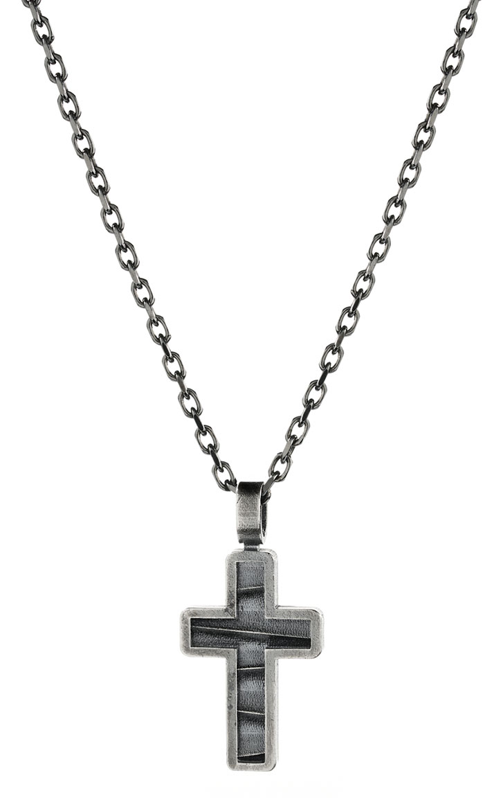 Lempikoru Kallio 4951200500 korshalsband i oxiderat sterling silver. Kedjas längd är justerbar mellan 45-50 cm, hänges storlek är 14 x 28 mm. Lempikoru smycken är ansvarsfullt handgjorda i Finland och skickas hem i tillverkarens originalförpackning.