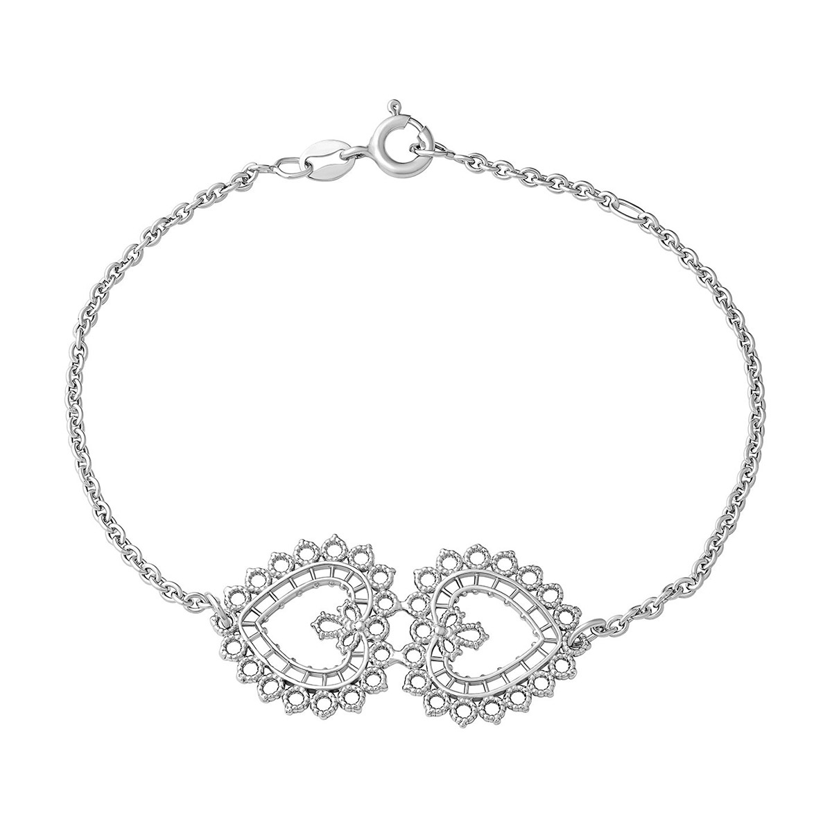 Det eleganta Lace Heart-armbandet är den perfekta kombinationen av känslighet och tidlöshet. Det stilfulla hjärtarmbandet symboliserar kärlek och intimitet, vilket gör armbandet till den perfekta presenten till en älskad, vän eller dig själv. Tillverkat av 925 sterlingsilver är detta armband designat för att hålla länge och vara användbart. Kedjans längd är 17/19 cm och hängets storlek är 34 x 18 mm. Kedjan har ett papegojspänne.