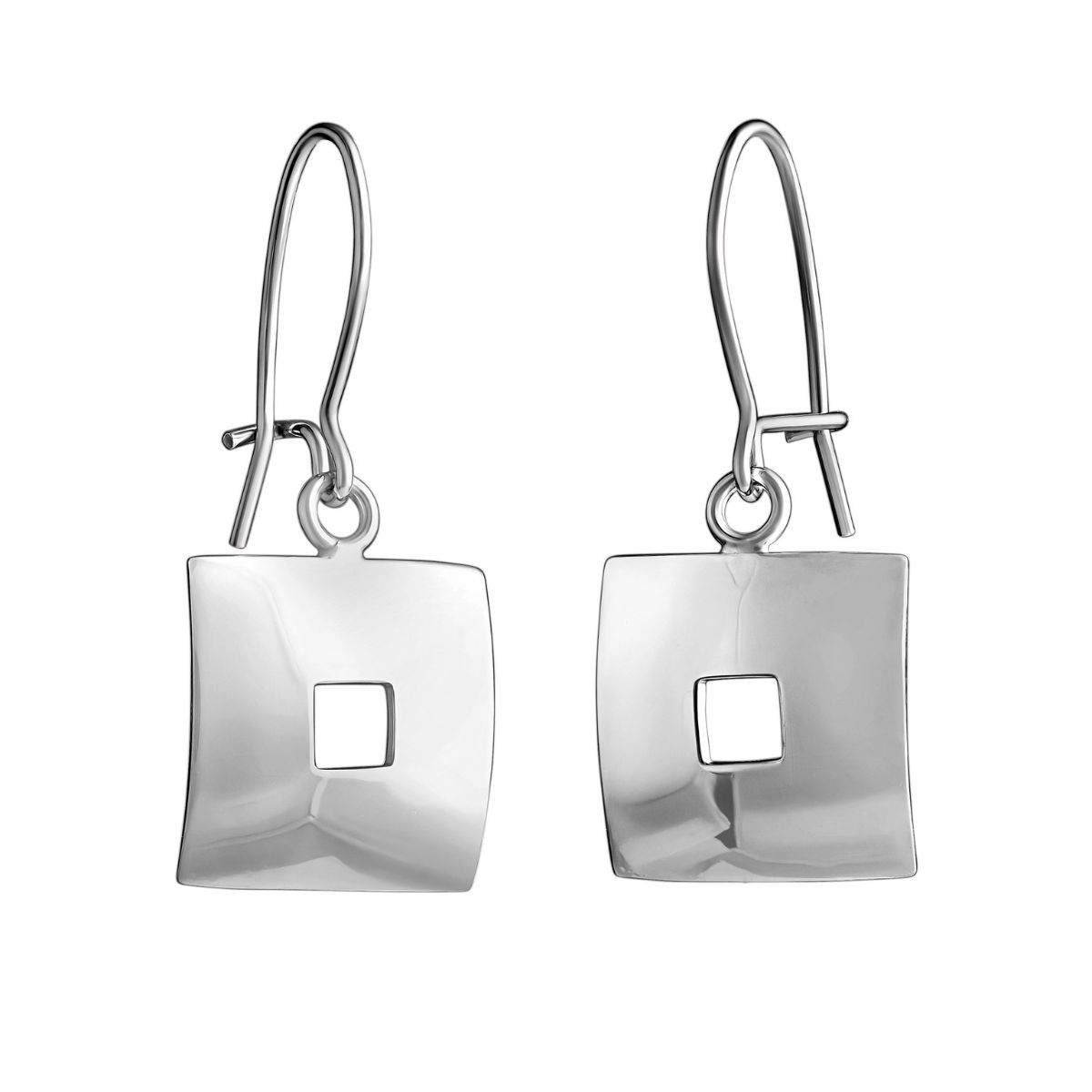Lempikoru, Tuulen silmä, tar oss till landet med dolda drömmar och tankar, dolda i detta fyrkantiga hänge och dess lilla fönster. De små krokörhängena 34 281 00 000 har en slät yta och är tillverkade i platinapläterat silver. Storleken på smycket är 13 x 13 mm. Alla smycken från Lempikoru är handgjorda i Finland och levereras i tillverkarens originalförpackning.