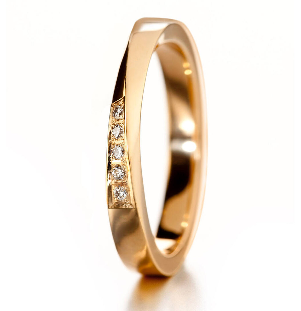 Diamantringen Lumoava Oath är en elegant radring. Laboratoriediamantringen är tillverkad i 14k gult guld och har fem 0,01 ct diamanter. Diamanternas totala vikt är 0,05 ct och ringens bredd är 3 mm. Ringen är tillverkad av 100% återvunnet gult guld och är handgjord i Kuopio, Finland. Ringen är designad av Heikki Hartikainen.