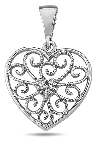 Det romantiska filigran hjärthänge i vittguld är tillverkad i 9 karat vitguld och är en vacker accessoar för vardagsbruk eller speciella tillfällen. Hjärtats mittpunkt är prydd med ett fint filigrandekoration och syntetiska zirkoner. Storlek: 13,36 x 13,72 mm, kedjan säljs separat. Filigran hjärthänge i vittguld levereras i tillverkarens originalförpackning.