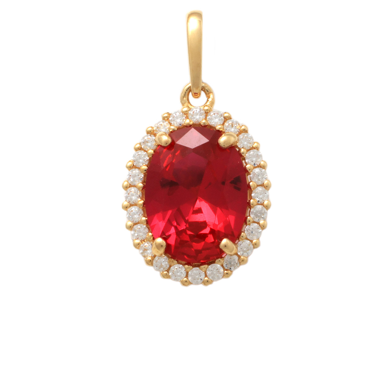 Lykka Casuals halo-hänge i guld är ett lyxigt hänge tillverkat av 9 karat guld. Det utstrålar klassisk skönhet och tidlös elegans i smyckesdesign. I hängets mitt gnistrar en djupröd dekorativ rubin, vars ovala slipning framhäver stenens lyster på ett strålande sätt. Runt rubinen löper en gnistrande halo av klara zirkoniastenar, som ger helheten en sofistikerad glans och framhäver ädelstenens nyans. Den varma guldfärgen, rubinens passionerade ton och zirkoniernas klara skimmer gör detta hänge till en perfekt blickfångare.