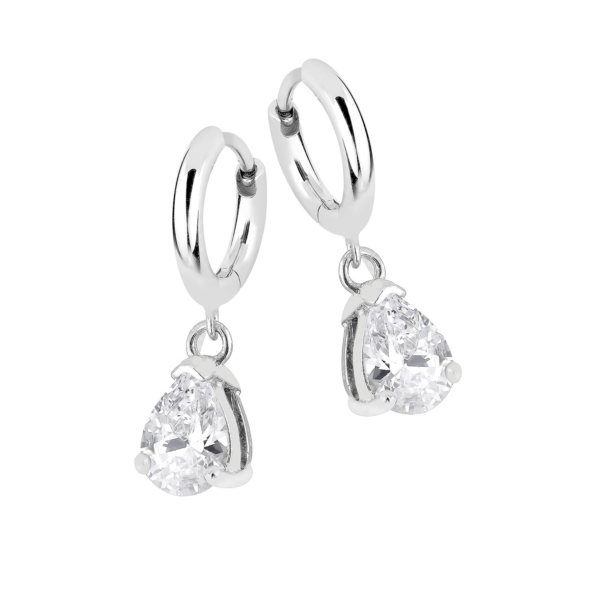 Elegant Lykka Casuals silver cubic zirconia örhängen är 12mm i storlek och har en ljus showy droppformad cubic zirconia (6x8mm) som dinglar vackert. Örhängena är tillverkade av sterling silver, som har varit rodiumpläterad på ytan för att förhindra missfärgning. Levereras i en Lykka ask.