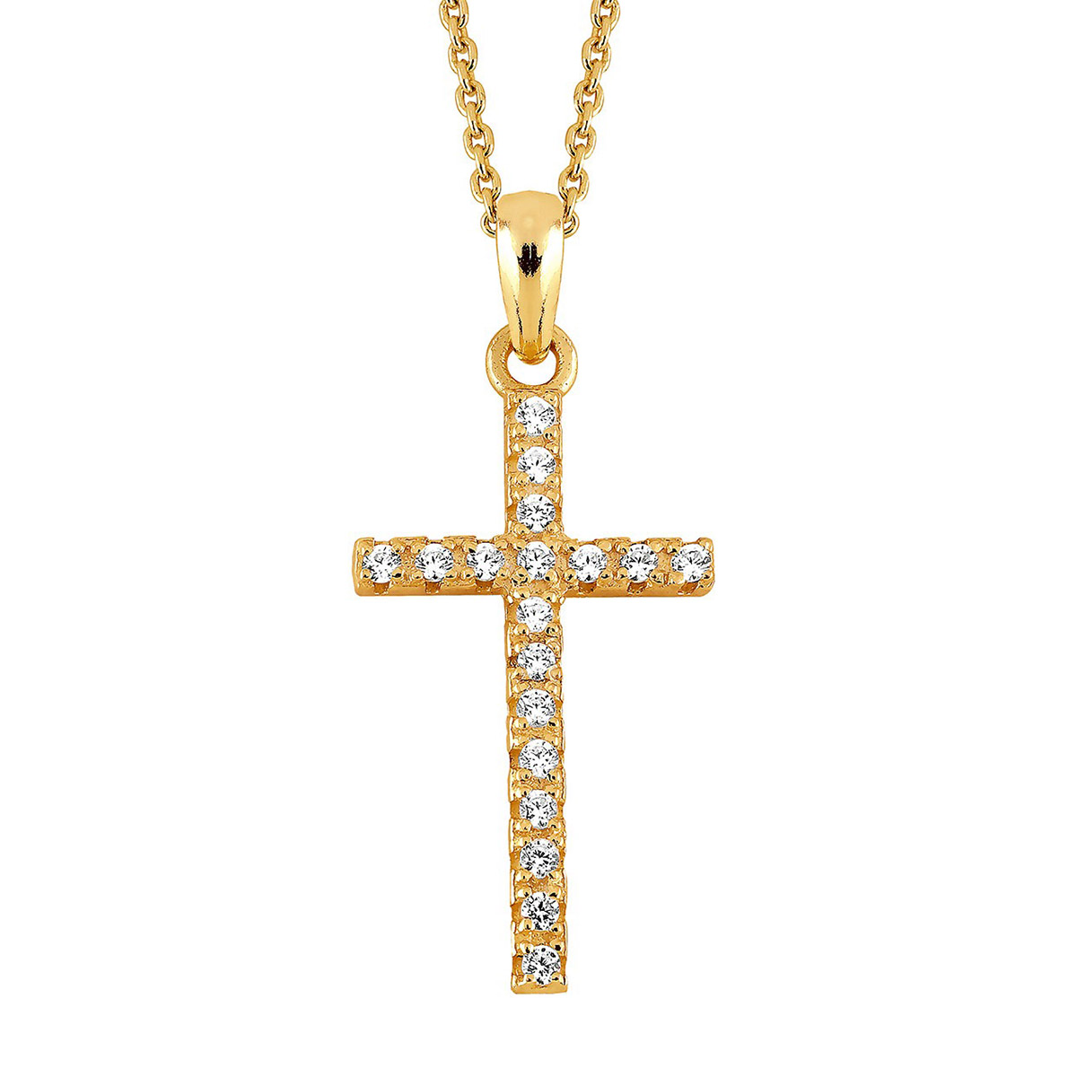 Lykka Crosses förgyllt silverkorshalsband med zirkoner 45 cm