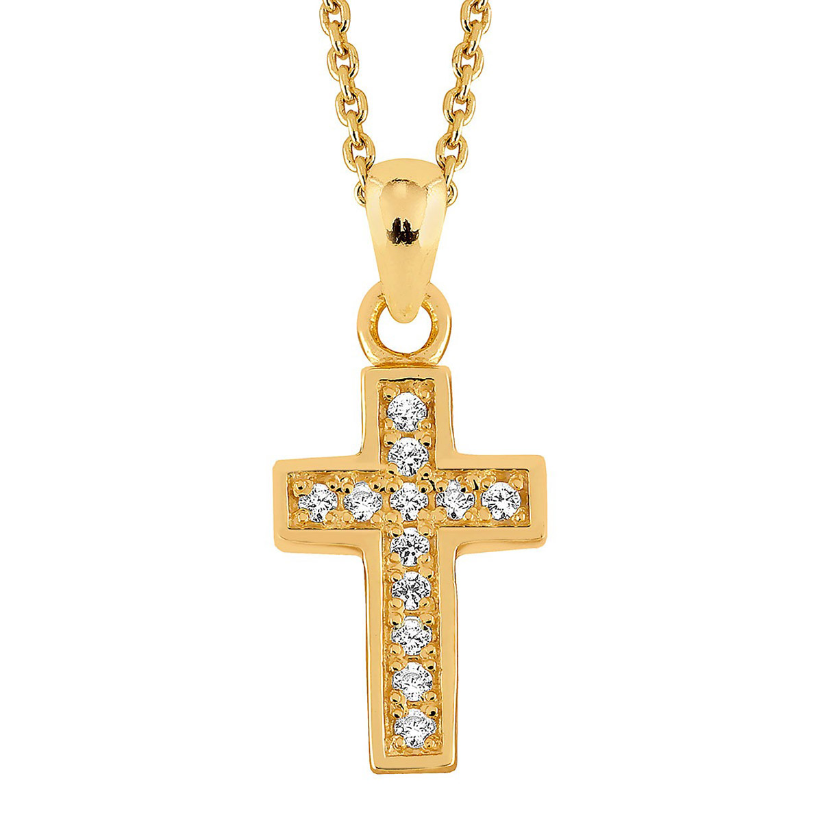 Lykka Crosses förgyllt silverkorshalsband med zirkoner 45 cm