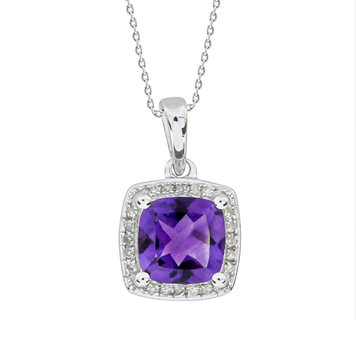 Lykka Elegance ametist diamanthänge i en unik nyans utstrålar vintageanda och värdighet. Det vackra hänget har en slående lila ametist i centrum, omgiven av 20 klara diamanter. Diamanterna har en totalvikt på 0,05ct och är graderade Wesselton/SI. Material 9 karat vitguld och storlek 8,2 mm. I setet ingår även ett par örhängen och en ring. Köp hela setet på en gång eller hämta ut var för sig.