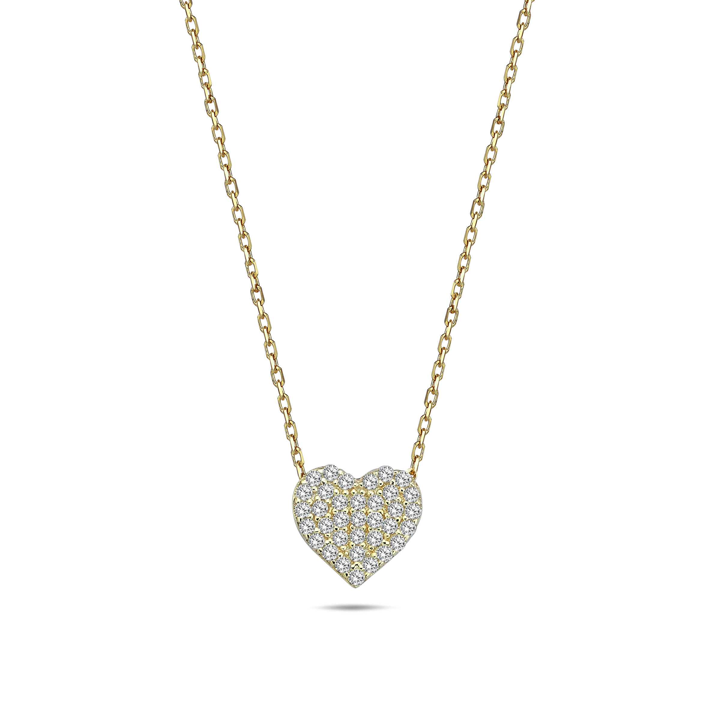 Lykas Hearts guldhalsband är ett klassiskt och vackert hjärthalsband. Det är utsmyckat med briljantslipade klara zirkonia, med en paveinfattning som får det att gnistra av skönhet. Tillverkat av 9 karat guld. Hjärtstorlek 9 x 7,85 mm. Guldkedjans längd är 42+3 cm, så du kan justera den till lämplig längd. Lykkas smycken levereras i en vacker smyckesask.