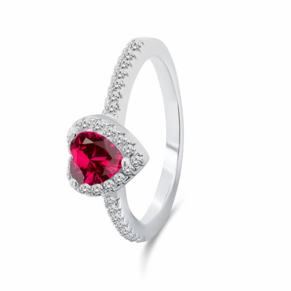 Den romantiska och glittrande Lykka Hearts-ringen har en slående hjärtformad mittsten. I mitten skiner ett rubinrött 8 x 8 mm hjärta omgivet av ljusa zirkonier. Ringens kropp är också dekorerad med zirkonier, vilket gör det hela extra skimrande och lyxigt.