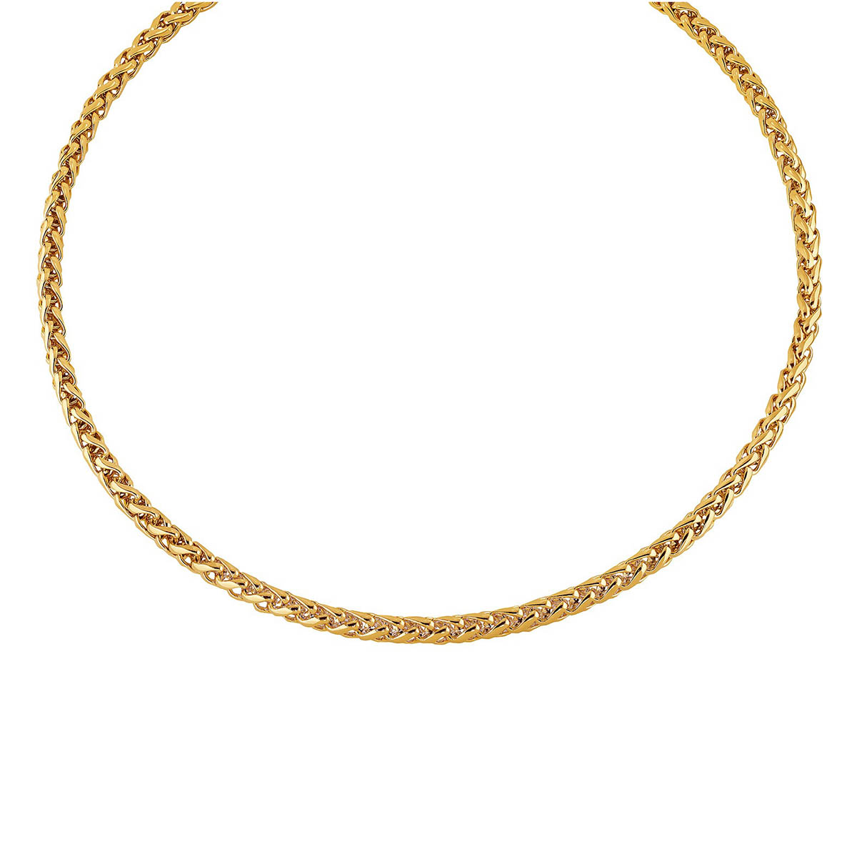 Lykka Strong förgyllt vetehalsband är ett klassiskt och tidlöst stålhalsband tillverkat av slitstarkt och högkvalitativt guldfärgat rostfritt stål. Den tjocka och snygga kedjedesignen gör det till ett slående accessoar för mångsidig användning.