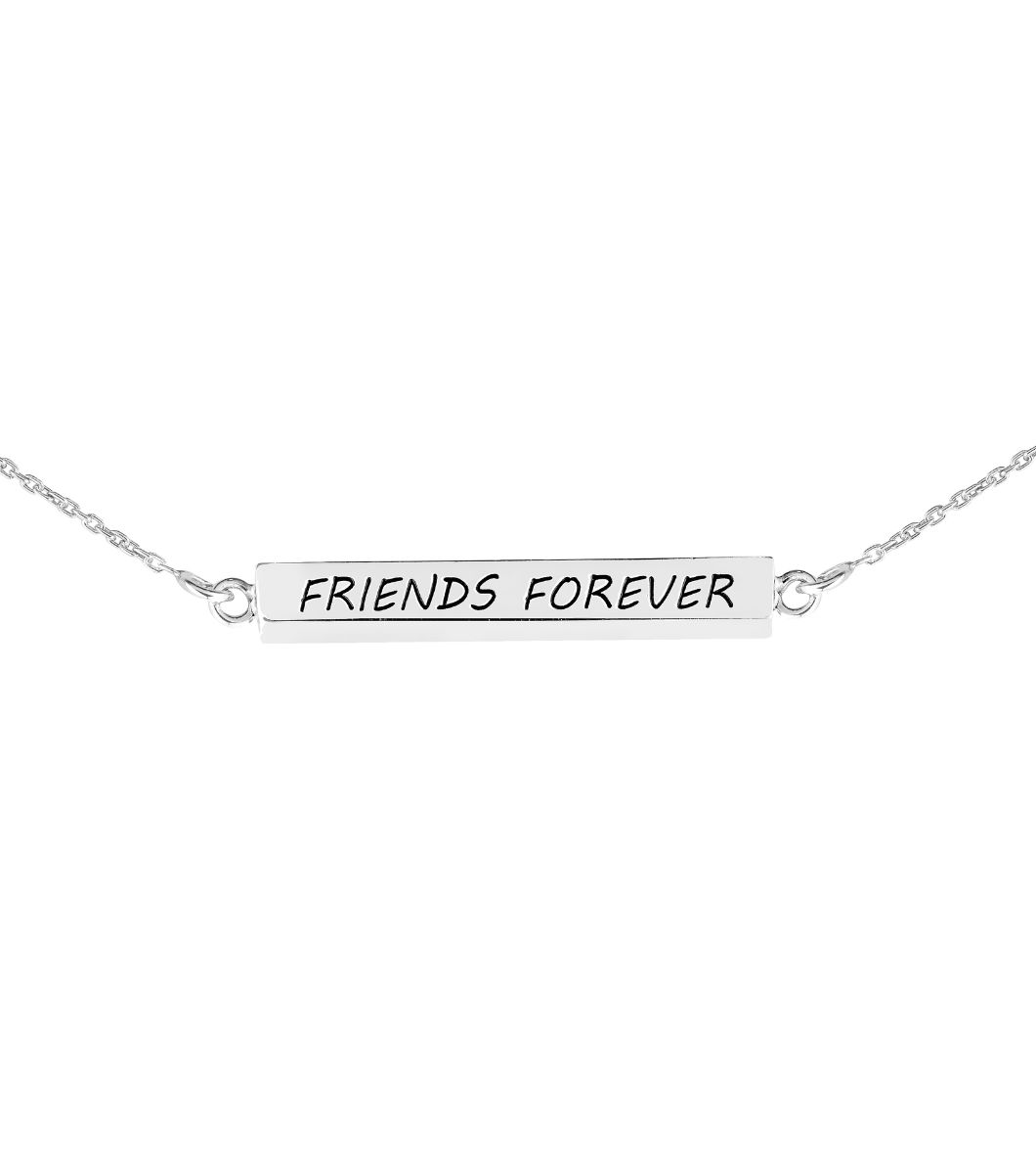 Lykka Symbols Friends forever platta halsband är ett vackert minne för en bästa vän. Den är tillverkad i sterling silver och kedjelängden är justerbar mellan 42-45 cm. Den är dekorerad med texten "Friends forever". Lykka vänskapshalsbandet levereras i en vacker ask.