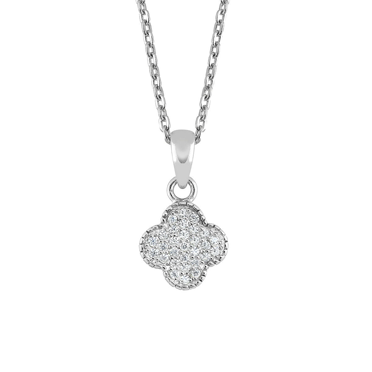 Lykka Symbols silverhalsband med fyrklöverhänge och zirkoniadekoration 45 cm