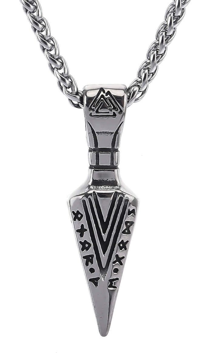 Lykka Viking Gungnir stålhalsband 60 cm 5,3 x 1,5 cm representerar Odins pil Gungnir. Detta spektakulära pilhalsband är 5,3 mm stort och levereras med en 60 cm lång kedja. Lykka Viking-smyckena kommer i sin originalförpackning.