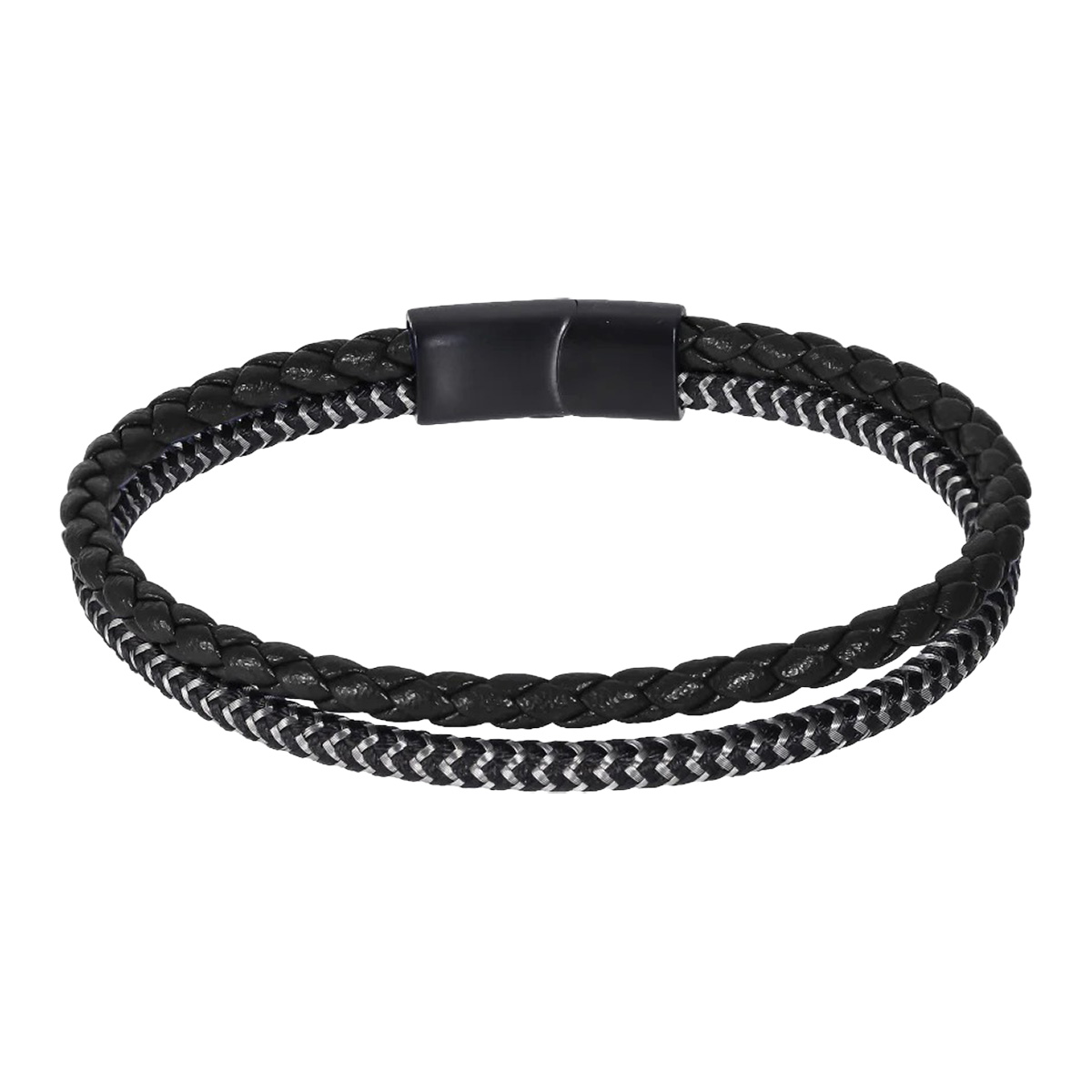 Lykken Strong läderarmband svart stål 21cm