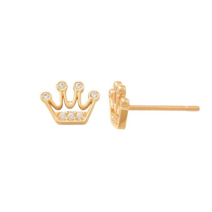 Söta Lykken Symboler guld tiara örhängen för prinsessan i hennes eget liv. Dessa stiftörhängen är tillverkade av 9 karats guld och är lämpliga för ett barn, tonåring eller vuxen. Storleken på örhängena är 7 x 5,35 mm och de har ljus zirkonia implanterad för att ge lite glans. De fina kronörhängena levereras i en Lykken ask.