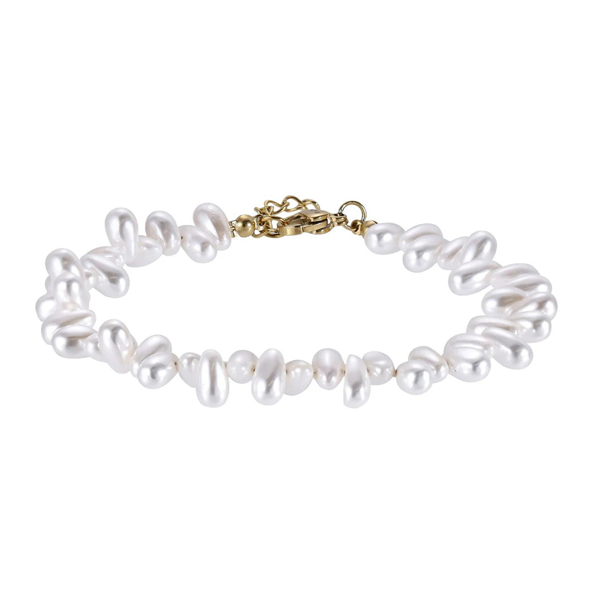 Lykken Trend stålarmband med sötvattenspärlor 18+2cm