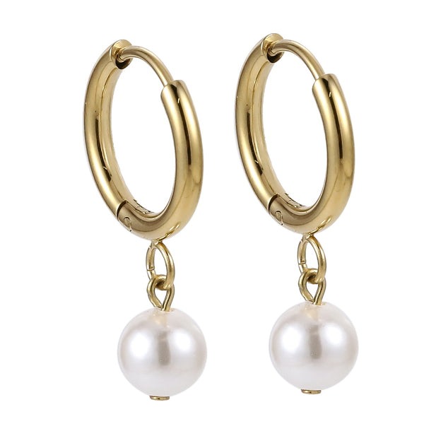 Lykken Trend vit pärla förgyllda creoler 10 mm