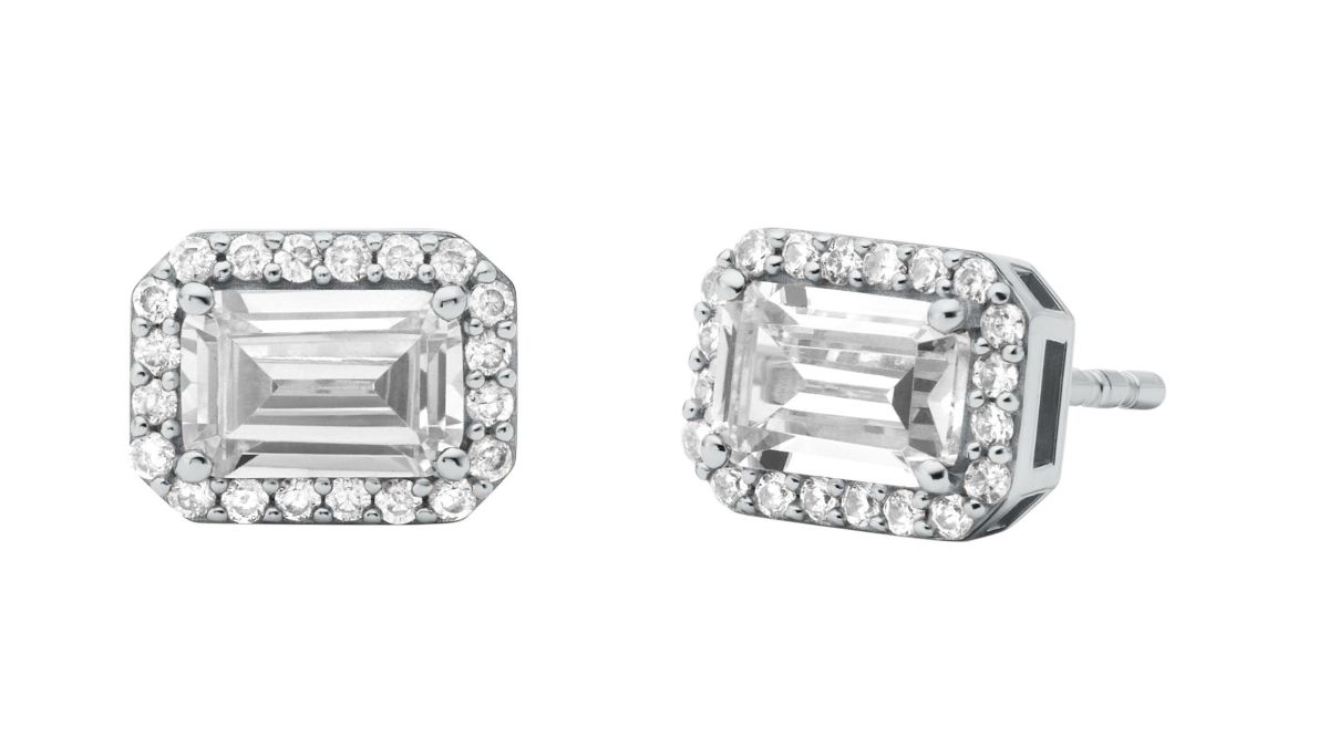 Michael Kors Brilliance silverörhängen MKC1724CZ040 har en elegant, rektangulär form och en imponerande haloinfattning. På smyckets yta finns en enda baguetteslipad cubic zirconia, flankerad av mindre, runda stenar. Helheten är genomtänkt, iögonfallande och perfekt för en festlig outfit. Örhängena i sterlingsilver mäter 13 x 23 mm. Michael Kors Brilliance silverörhängen MKC1724CZ040 levereras i tillverkarens originalförpackning.
