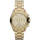 En stilren design som har inspirerats av klassiska herrklockor kombineras med lyxigt guld och romerska siffror. Damklockan Bradshaw från Michael Kors är en fantastisk accessoar som kombinerar användbara funktioner med en elegant design. Den champagnefärgade urtavlan har tre visare, romerska siffror och streck som timmarkörer. Indexmarkeringar på den yttre ringen visar minuter. Tre subdials och ett fönster visar datum, 24-timmarsklocka och hastighet/avstånd som mäts av kronografen. Länkarmbandet stängs med ett viklås och alla metalldelar är tillverkade av PVD-guldpläterat stål. Vattentät ner till 100m.