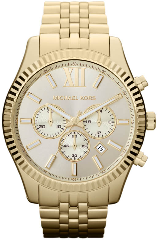 Michael Kors MK8281 är en snygg guldfärgad kronografklocka med blackpolerat armband och hölje, tre suburtavlor och en mycket klassisk räfflad krans runt urtavlan. Boettets bredd är 45 cm. Denna Michael Kors MK8281 är perfekt för casual wear och levereras i sin originell presentförpackning.