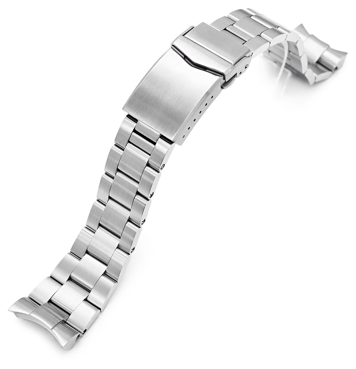 MiLTAT Super-O Boyer stålarmband för Orient Mako II & Ray II-serien SS221820B061 är tillverkat av 316L kirurgiskt stål. Armbandet passar till Orient Mako II- och Ray II-klockor. Längden på armbandet kan enkelt justeras tack vare de sex justeringshålen på spännet. Armbandet levereras med 2 st. 2 mm fjäderpinnar för säker montering i boetten. Armbandet är 22 mm brett vid lug och armbandsdelarna är fastskruvade. En dubbel låsande spännskruv kompletterar armbandet.